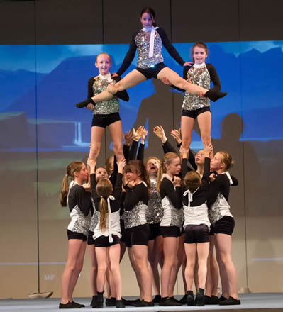 Auch einige Girls von Co-Dance AKRO3 wagen sich in schwindelerregender Höhe